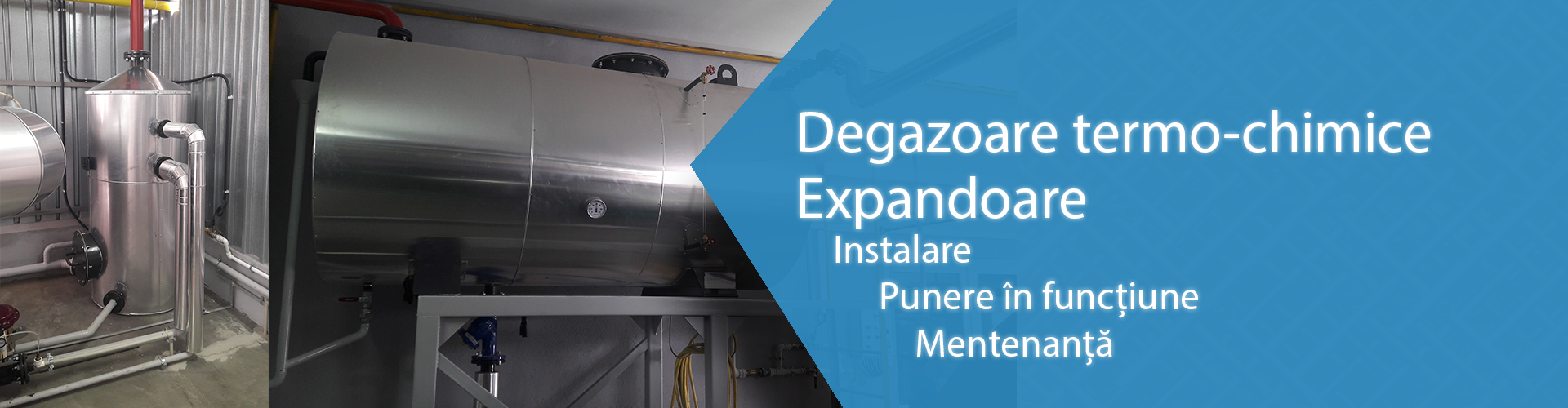 - instalare degazoare termo-chimice și stații pompare condensate/colectoare-distribuitoare/butelii egalizare presiune/module expansiune deschise/stații preparare apă caldă menajeră;